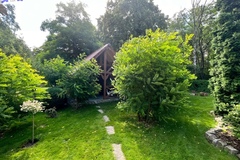 Teren w pełni zagospodarowany, z licznymi nasadzeniami i wybudowaną z drewna wiatą ogrodową idealnie nadającą się na rekreację.