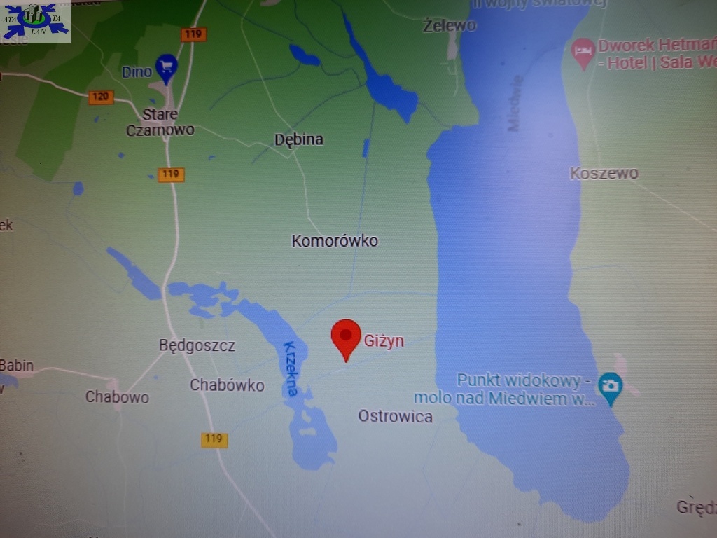 Działka o powierzchni 900 m2 położona w miejscowości Giżyn w niewielkiej odległości od jeziora Miedwie.
