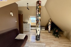 - salon z aneksem kuchennym, jadalnią oraz wyjściem na balkon,