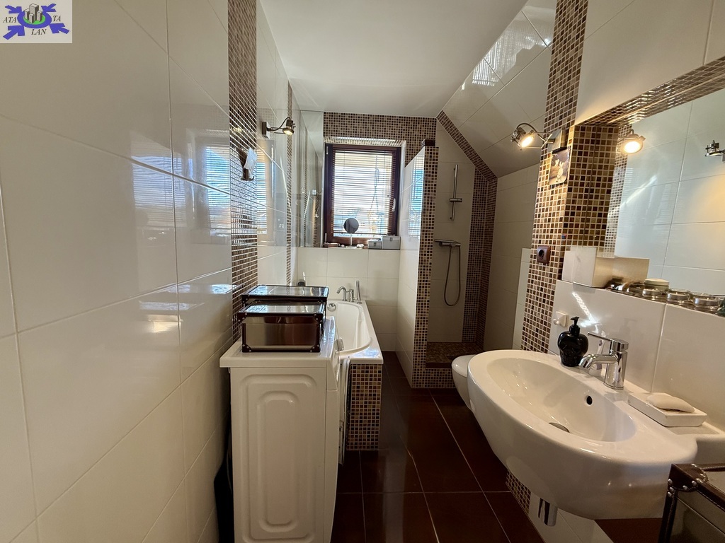 Na drugi poziom prowadzą starannie wykonane schody z drewna bukowego.