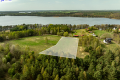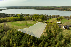 Działka o pow. 4504m2 oddalona jest w linii prostej od jeziora ok 145m.