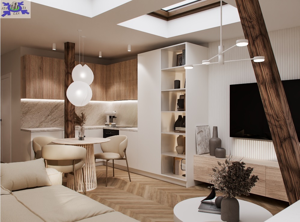 - pokój dzienny połączony z aneksem kuchennym 20,00 m2.