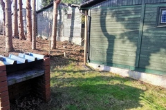 Miejsce zostało zagospodarowane ok. 30 lat temu - aktualna zagospodarowanie nieruchomości - 10 domków drewnianych, w stanie od dobrego po stan do odświeżenia (posadowionych zgodnie z decyzją o pozwoleniu na użytkowanie) oraz piękna zieleń i drzewa, które latem dają schronienie przed słońcem i stanowią element oddzielający domki , zapewniając gościom sporą prywatność. Przed każdym z domków zewnętrzny grill do wyłącznego używania. Na terenie znajduje się też miejsce do parkowania, mały plac zabaw, piaskownica.