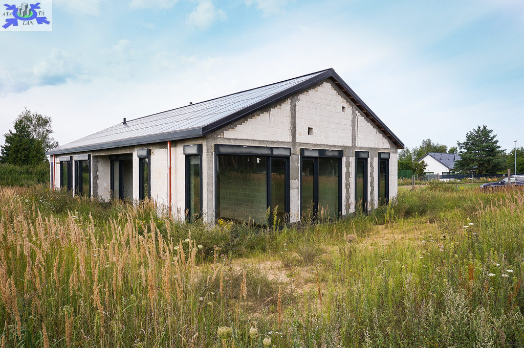 Dom z bloczków, okna aluminiowe w systemie Reynaers Aluminium MasterLine 8Hl+, więźba dachowa z drewna skandynawskiego,