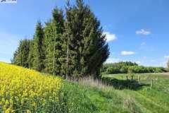 Działka znajduje się na lekkim wzniesieniu, z którego rozciąga się piękny widok na otaczające łąki, pola i lasy. Wschody i zachody słońca oglądane stąd potrafią naprawdę zachwycić.