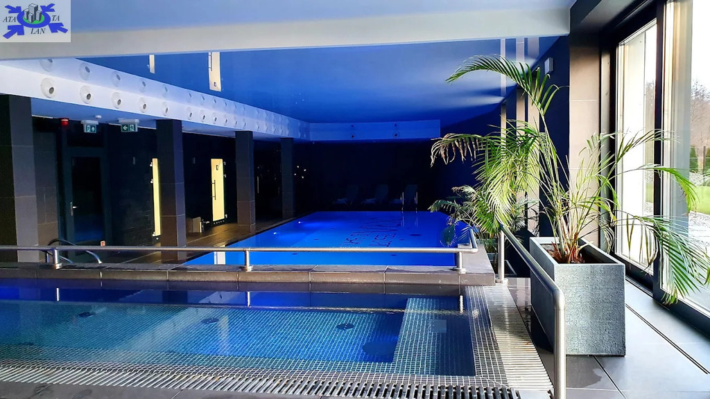 sala basenowa 185,30m2 z basenem głębokim na 1,5m długim 15m , jacuzzi, szatnia męska, damska oraz wc komunikacja i sala fitness