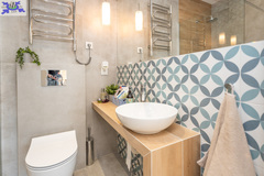 - łazienki z WC wyposażonej w kabinę prysznicową typu "walk in"