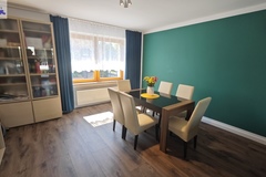 Nieruchomość w ciągu ostatnich dwóch lat przeszła bardzo wiele prac remontowych. Właściciele w większości pomieszczeń wygładzili i pomalowali ściany. Na parterze nowe panele w salonie, kuchni i przedpokoju. Nowe drzwi wewnętrzne w dolnej łazience i wiatrołapie plus całkowicie nowe drzwi zewnętrzne antywłamaniowe (wymienione na początku tego roku). Całkowicie nowa kuchnia (meble w zabudowie plus sprzęt AGD). Wszystkie okna w całym domu wymienione na nowe drewniane (wymiana okien zakończona pod koniec 2024 roku) plus wszędzie nowe parapety (pozostały jeszcze do pomalowania ściany przy samych świeżo wymienionych oknach i parapetach). W większości domu została wykonana nowa instalacja elektryczna. Dodatkowo wykonano ozdobne oświetlenie punktowe w salonie, kuchni, jednej z sypialni oraz w dolnej łazience.