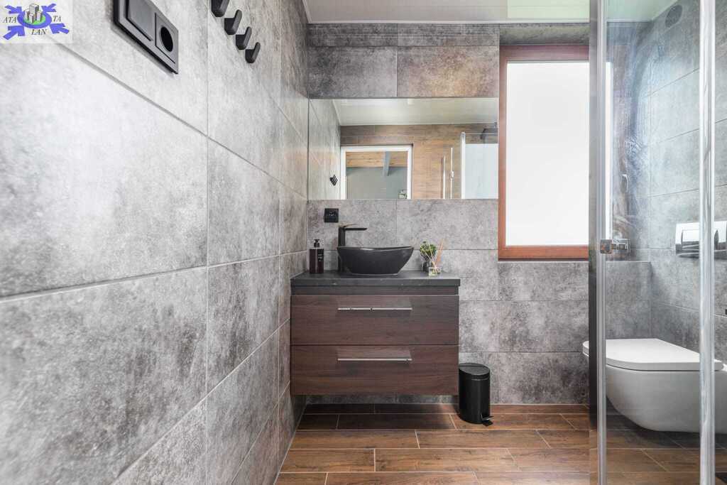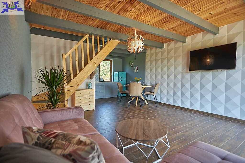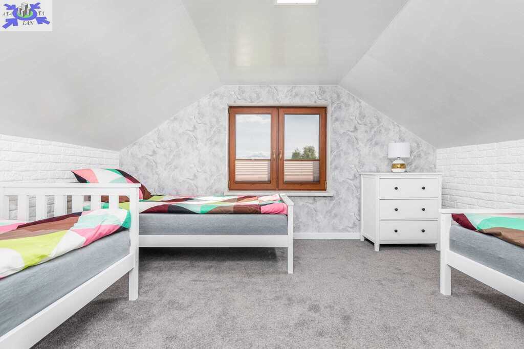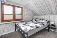 Piętro dwie oddzielne sypialnie - jedna przystosowana dla trzech osób, druga dla dwóch. Maksymalna liczba gości w jednym domku to siedem.