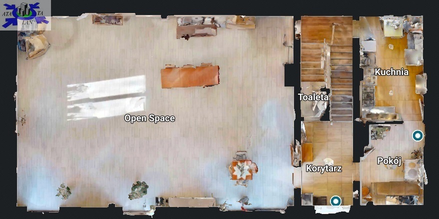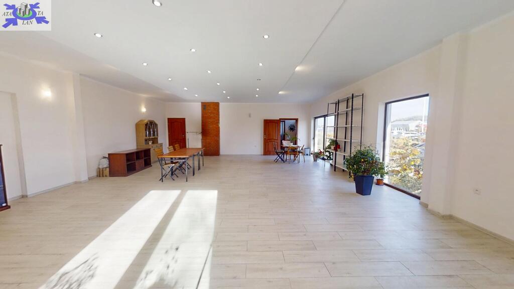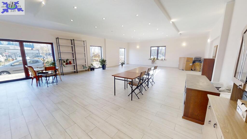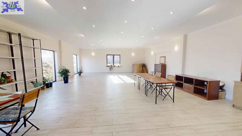 Parter 125 m2, z czego 93 m2 to 1 duża sala z 3 dużymi oknami, korytarz, wc, kuchnia, kotłownia.