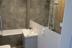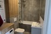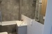 Łazienka z kabiną prysznicową pięknej glazurze i terakocie.