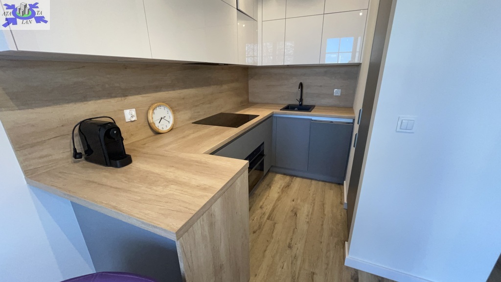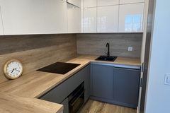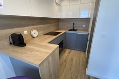 Kuchnia w aneksie, urządzona komfortowo, robiona na wymiar z wysokiej jakości sprzętem AGD w zabudowie lodówka, piekarnik, płyta indukcyjna, zmywarka , itd.