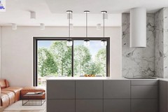 - Jasny przestronny salon z aneksem kuchennym o powierzchni 24,45 m2 z bezpośrednim wyjściem na taras o powierzchni około 24 m2