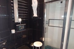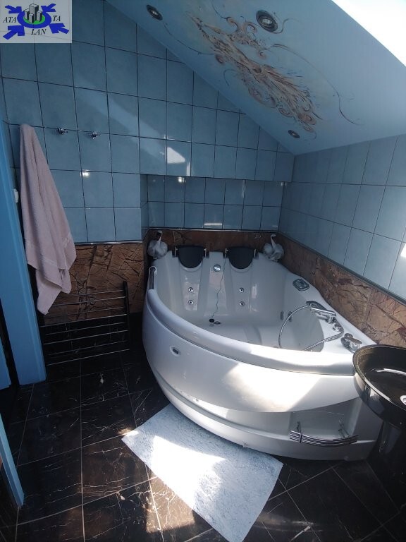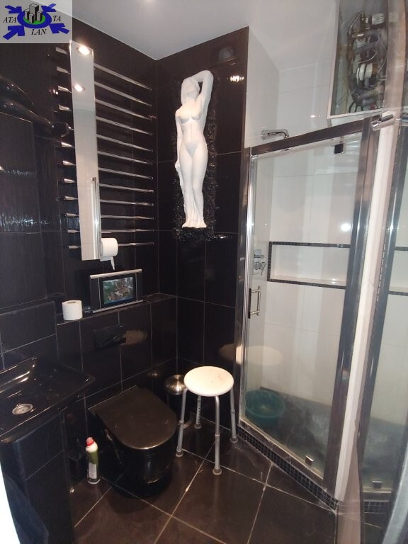 na tym poziomie znajduje się Mniejsza łazienka w glazurze i terakocie z kabiną prysznicową.