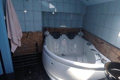 Łazienka z oknem, z wc w glazurze i terakocie z dużą wanną z Jakuzzi.