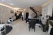 W salonie na podłodze panele, ściany wygładzone i pomalowane. Na jednej ze ścian kominek na drugiej ścianie aranżacja artystyczna z rzeźbami