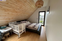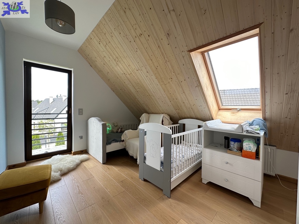- 3 sypialnie z zabudowami meblowymi - w sypialni głównej zabudowa typu walk-in closet, z pozostałych dwóch wyjście na wspólny balkon z panoramą na pobliskie pola i lasy