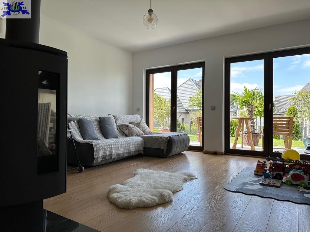 Działka w pełni zagospodarowana z nasadzeniami, trawa z rolki, system nawadniania Rain Bird oraz robot koszący Husqvarna. Na działce domek gospodarczy ze składzikiem na drewno opałowe, drewniana huśtawka wykonana na zamówienie, oraz sauna wolnostojąca.