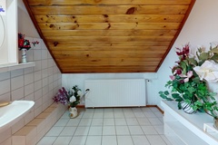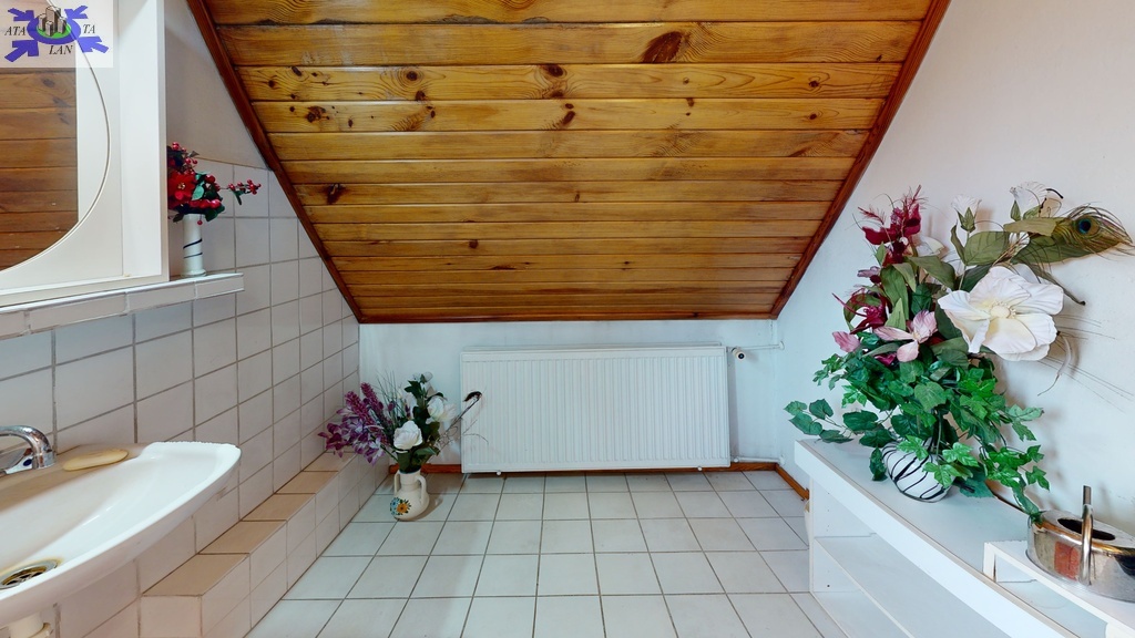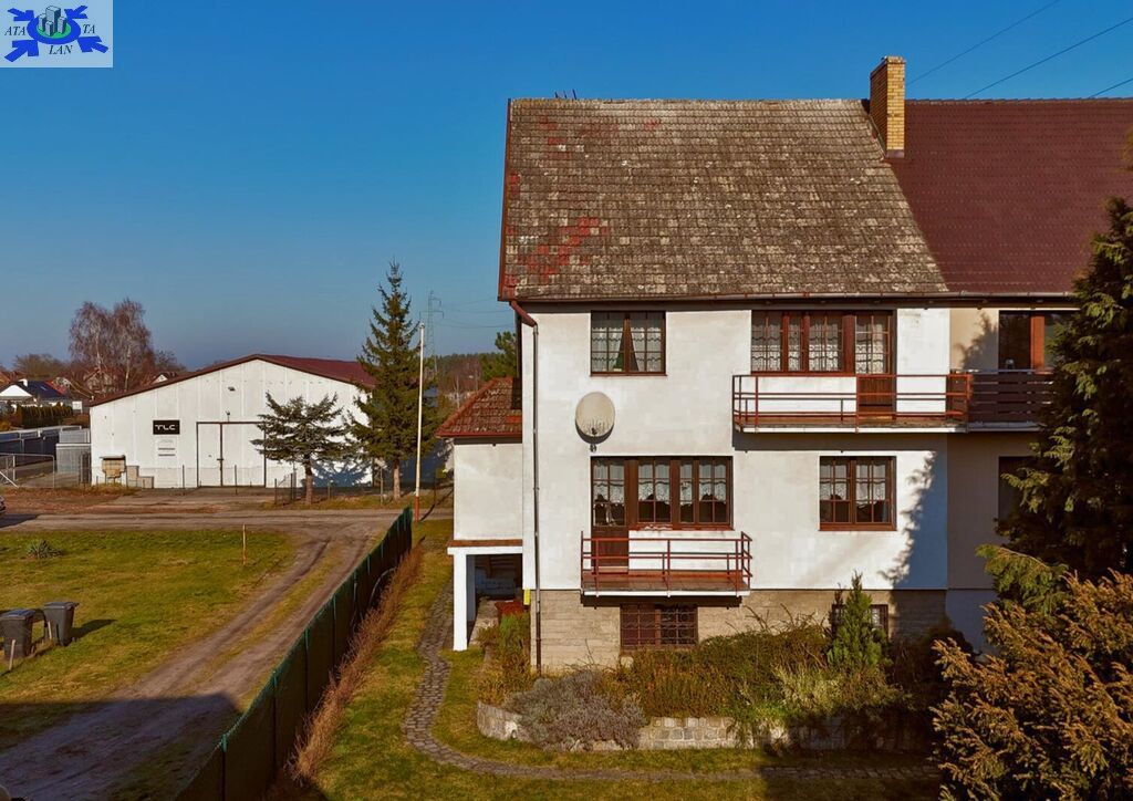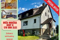 Nieruchomość jest podzielona na współwłasność - przedmiotem umowy jest jedna druga nieruchomości. Dom posiada dwa wejścia, co daje możliwości wydzielenia nawet dwóch oddzielnych mieszkań. Ogrzewanie gazowe - piec gazowy nowej generacji. Ciepła woda z pieca gazowego. Nieruchomość podłączona do wodociągu i kanalizacji. Z tyłu domu znajduje się mały ogród z możliwością urządzenia własnego kącika. W pobliżu znajdują się trasy rowerowe i tereny zielone. W miejscowości znajdują się szkoła i przedszkole. Dom wykończony w stylu lat 90-tych, z dużą ilością drewna.