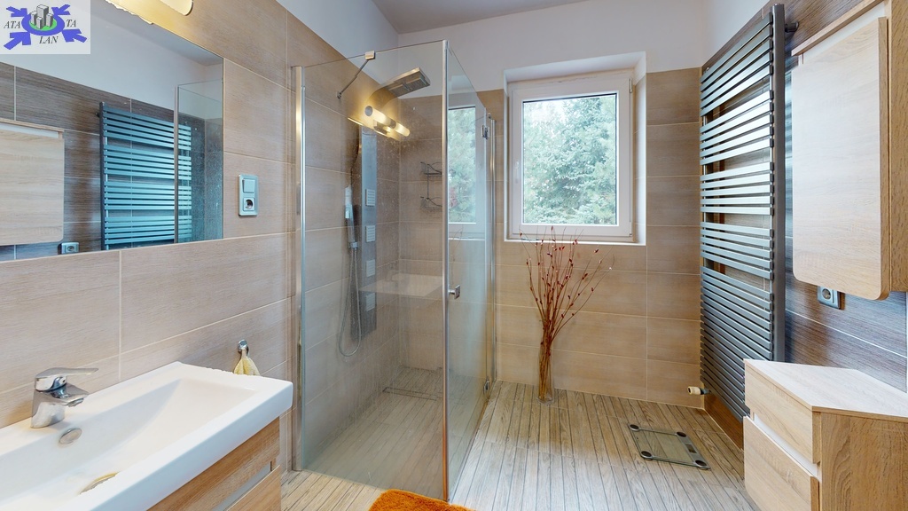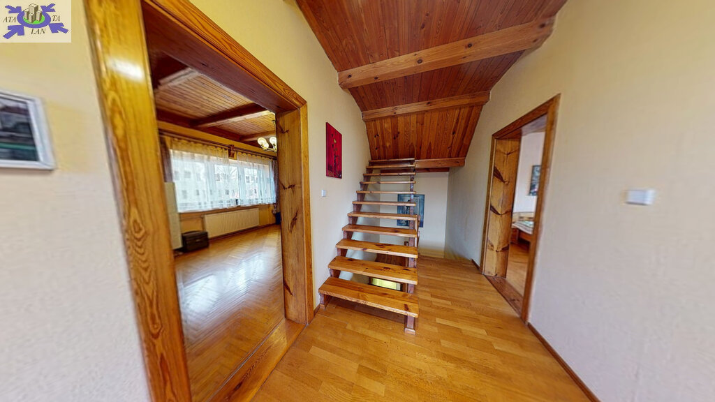 Dom w zabudowie bliźniaczej, wybudowany w latach 80-tych, o powierzchni użytkowej 220 m2.