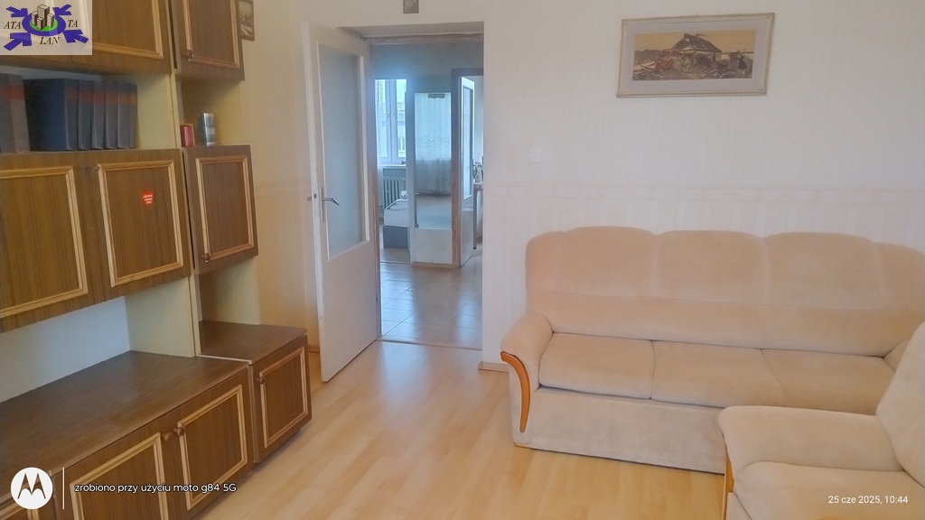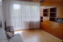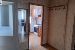 Mieszkanie rozkładowe o standardzie podstawowym. Na podłogach w pokojach panele, okna PCV, drewniana stolarka drzwiowa wewnętrzna wymaga odnowienia. W przedpokoju na podłodze terakota, szafa wnękowa starszego typu. Powierzchnia przedpokoju 8 m2.