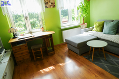 Pokój 16 m2, sypialnia 21 m2, kuchnia z oknem o powierzchni 12 m2 z zabudową meblową i urządzeniami AGD.