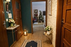 Na podłogach znajdują się panele w doskonałym stanie, a w łazience i WC estetyczne płytki ceramiczne. Okna PCV oraz eleganckie, drewniane drzwi wewnętrzne podkreślają spójny i ponadczasowy charakter wnętrza.