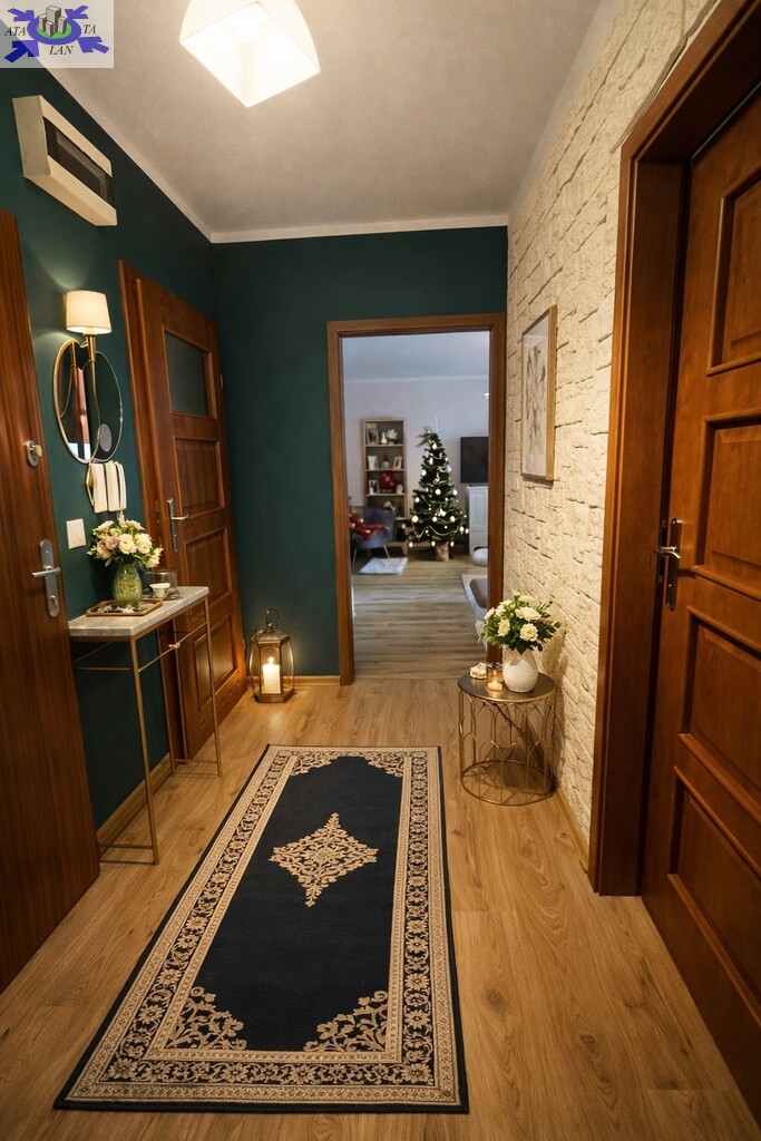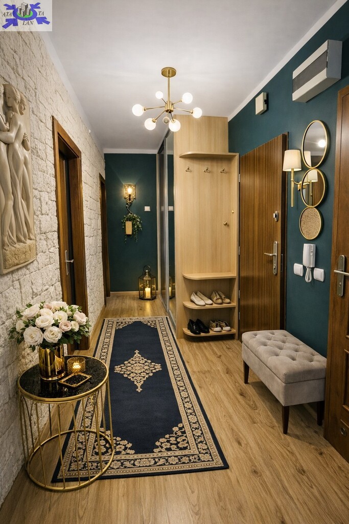 Całość dopełnia łazienka z wanną i WC oraz funkcjonalny przedpokój z miejscem na przechowywanie.