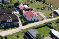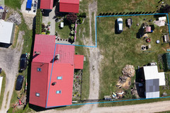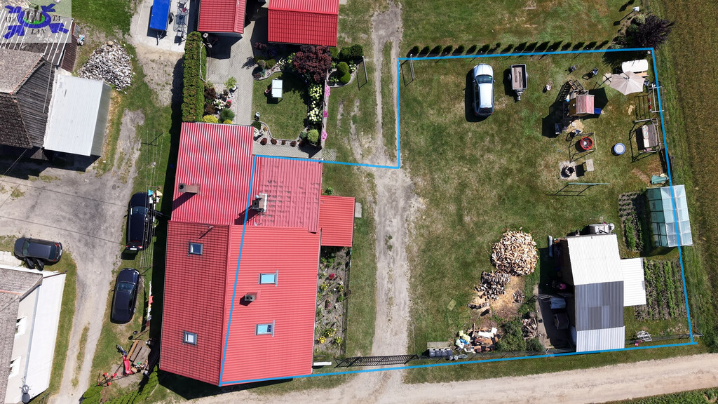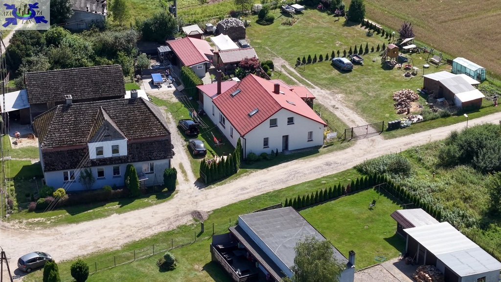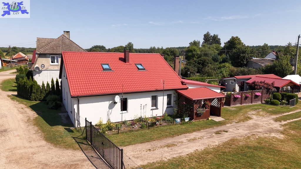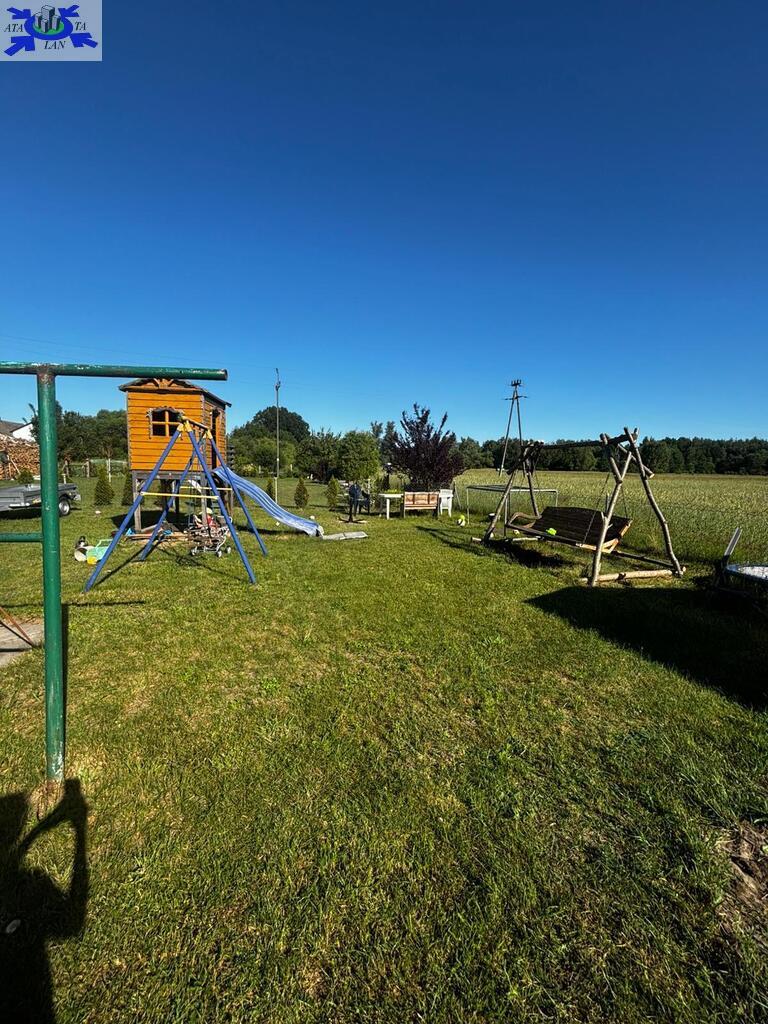 Lokal mieszkalny stanowi połowę domu, teren jest ogrodzony płotem z bramą wjazdową. Bezpośrednio przy wejściu do mieszkania znajduję się teren zielony dzierżawiony od Gminy na którym właściciele mieszkania wybudowali plac zabaw dla dzieci, szopę i stworzyli swój ogród warzywny.