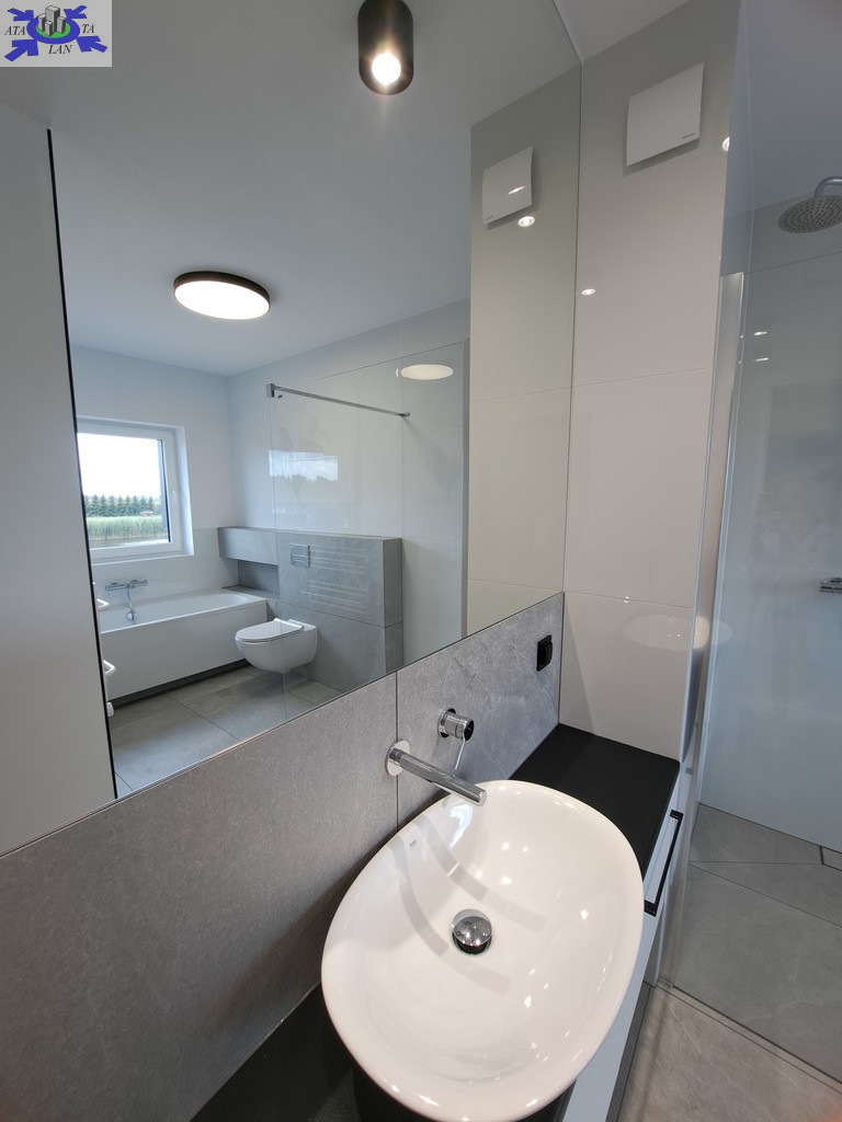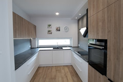 Dom składa się z salonu połączonego z kuchnią, toalety, dwóch pomieszczeń gospodarczych - na pierwszej kondygnacji. Drugą stanowią trzy sypialnie, garderoba oraz łazienka z wanną i kabiną prysznicową. Dodatkową powierzchnię stanowi strych, który z powodzeniem możemy wykorzystać do przechowywania. Całość wykończona w wysokim standardzie, użyto materiałów wysokiej klasy.