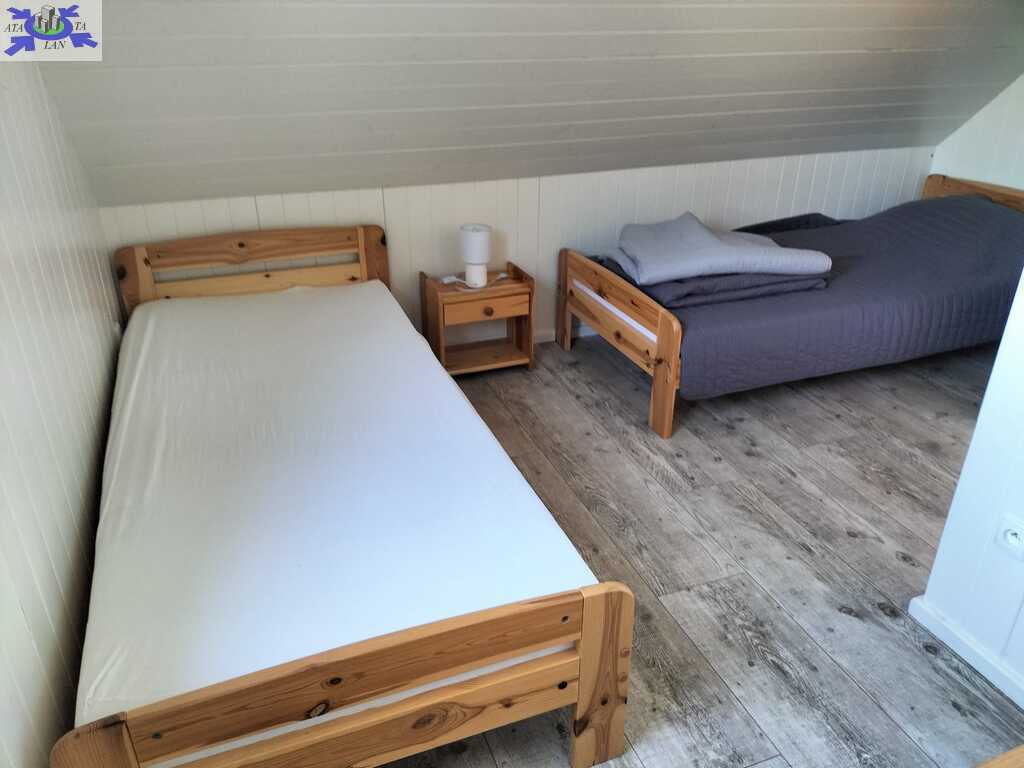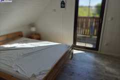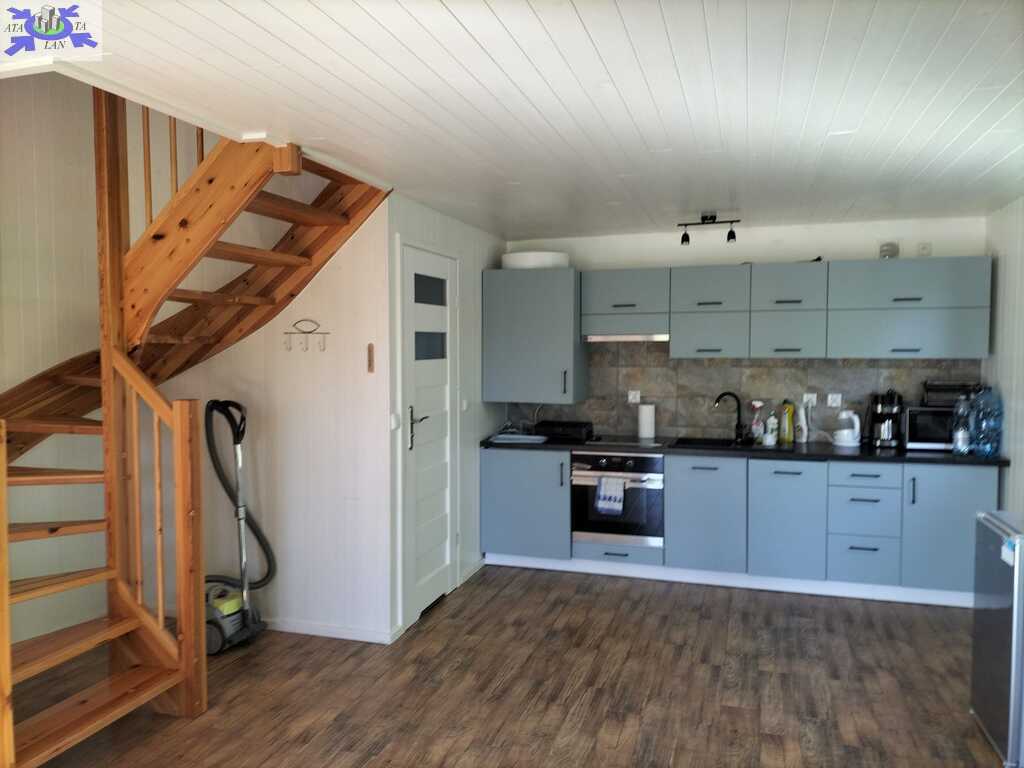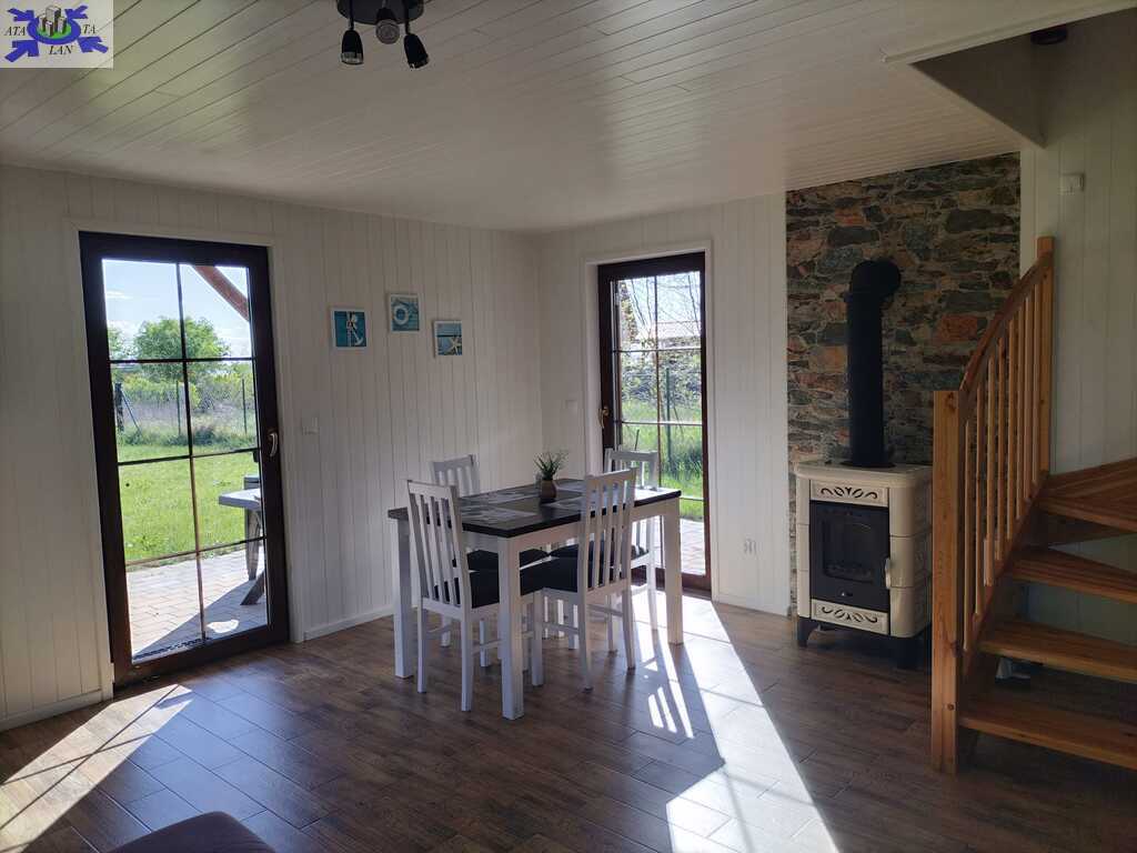 Powierzchnia całkowita domku to 85,44m2, użytkowa 46,96m2. Znajduje się on na działce o powierzchni 570m2, w całości ogrodzonej. Na parterze znajduje się salon z aneksem kuchennym, z miejscem na kącik jadalny, oraz łazienka. Z salonu wychodzimy na zadaszony taras. Na drugim poziomie znajdują się 2 pokoje. Z jednego wyjście na balkon z ładnym widokiem. Na terenie działki mamy grillowisko oraz zestaw huśtawek.