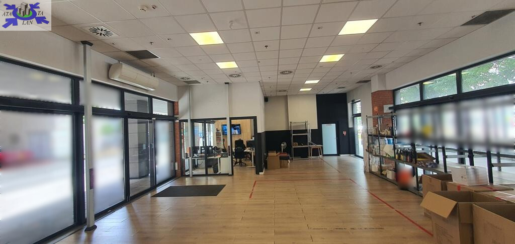 Wielkie witryny wystawowe do samej podłogi, dające bardzo dużo światła dziennego.