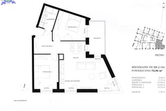 OPIS MIESZKANIA mieszkanie 3 pokojowe o powierzchni 72,96 m2, z wyjściem na balkon o powierzchni 7,98 m2. Pokój z aneksem kuchennym o powierzchni 31,5 m2, sypialnia 13,62 m2 i 13,33 łazienka 5,13 m2, przedpokój 9,38 m2. Balkon od strony wschodniej o powierzchni 7,98 m2. I piętro w V piętrowym budynku z windą. Wystawa okien południowo- wschodnia.
