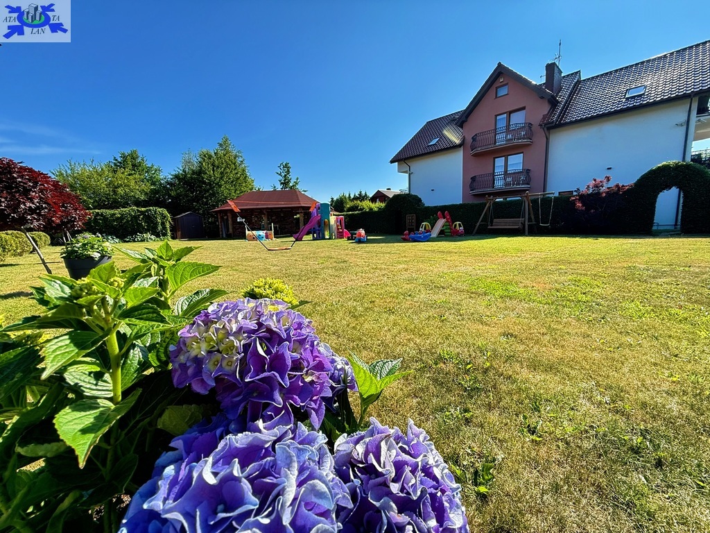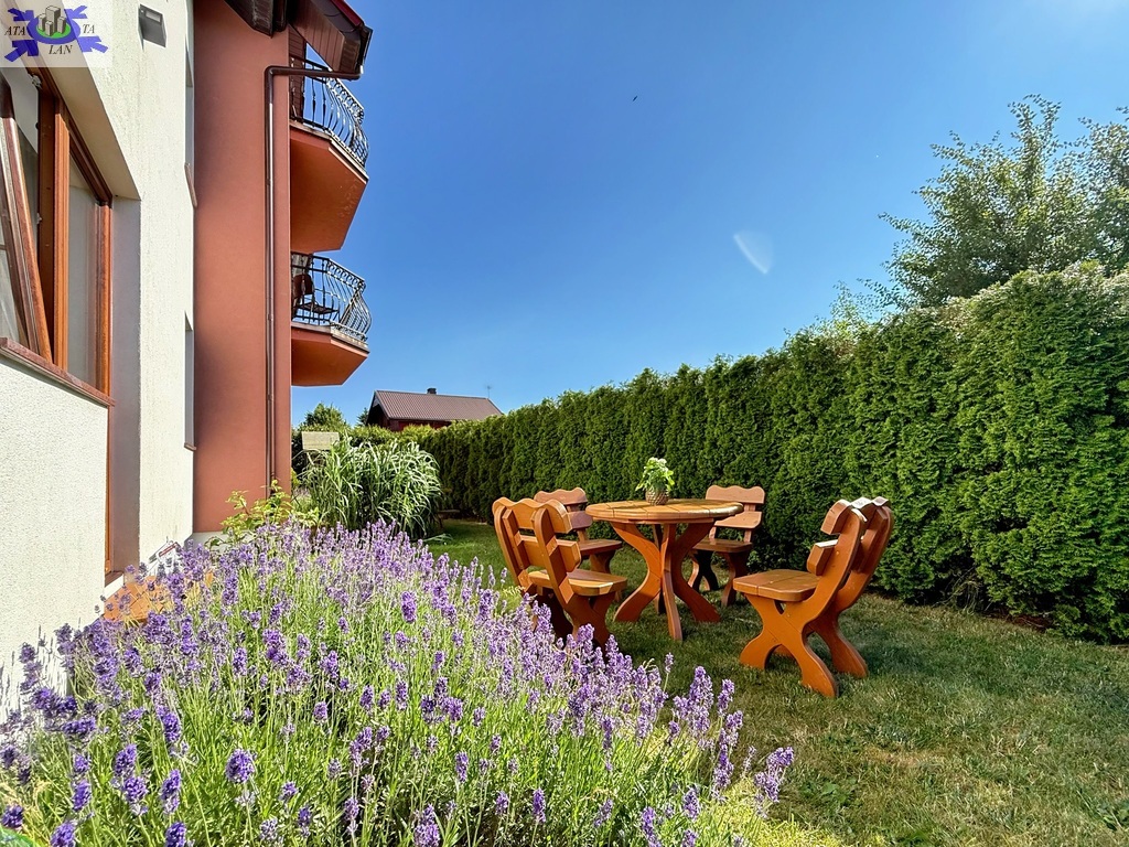 Pensjonat otoczony jest dużym, zadbanym ogrodem z licznymi nasadzeniami, który zapewnia gościom miejsce do relaksu oraz odpoczynku na świeżym powietrzu. Dodatkowo, na terenie obiektu znajduje się przestronna altana, która może pomieścić około 70 osób - doskonałe miejsce do organizacji eventów, przyjęć czy spotkań integracyjnych.