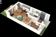 - Do każdego domu przynależne 2 miejsca parkingowe, jedno przed budynkiem a drugie przy granicy z działką drogową.