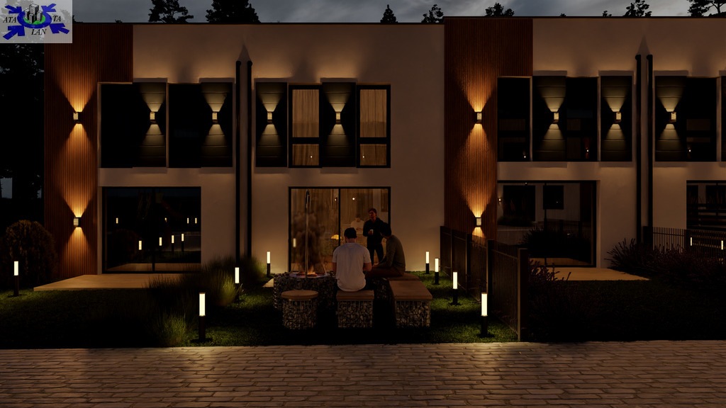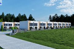 - Do każdego domu przynależne 2 miejsca parkingowe, jedno przed budynkiem a drugie przy granicy z działką drogową, Nowa inwestycja, osiedle budynków mieszkalnych jednorodzinnych w zabudowie szeregowej.