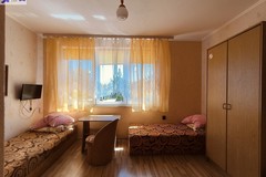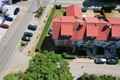 Niektóre z pokoi posiadają balkon. Mieszkanie na parterze (część prywatna właściciela) posiada wyjście na taras i ogród.