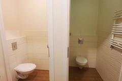Na podłogach wykładzina i kafle, ściany i sufity gładzone, malowane, oświetlenie rastrowe. Łazienka z WC w eleganckim stylu. Okna nowego typu, otwierane, PCV.