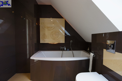 Łazienka na piętrze znajdziesz tu wygodną wannę oraz dwie umywalki, które ułatwiają poranne przygotowania i wieczorne wyciszenie.