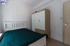 Rolety zaciemniające zapewniają prywatność i komfort snu, a dodatkowa wnęka umożliwia montaż telewizora.