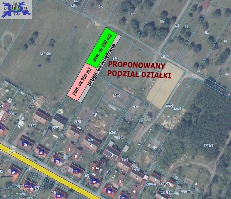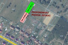 Działka ma regularny kształt, dobry dojazd drogą gruntową.