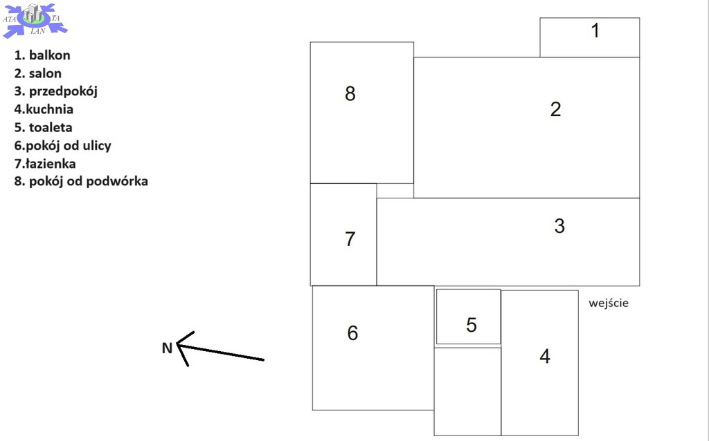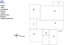Salon przestronny z wyjściem na balkon od strony podwórka. Do salonu prowadzą przesuwne drzwi. Pozostałe dwa pokoje osobne, jeden z oknami od strony podwórka, drugi od ulicy. Kuchnia umeblowana i wyposażona (lodówko-zamrażarka, kuchenka, okap).