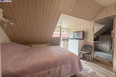 Na podłogach w salonie, kuchni, przedpokoju i wiatrołapie położone są panele, ściany są wygładzone i pomalowane. Na poddaszu w sypialniach na podłogach panele, ściany wygładzone i pomalowane. Łazienka z wc w glazurze i terakocie.