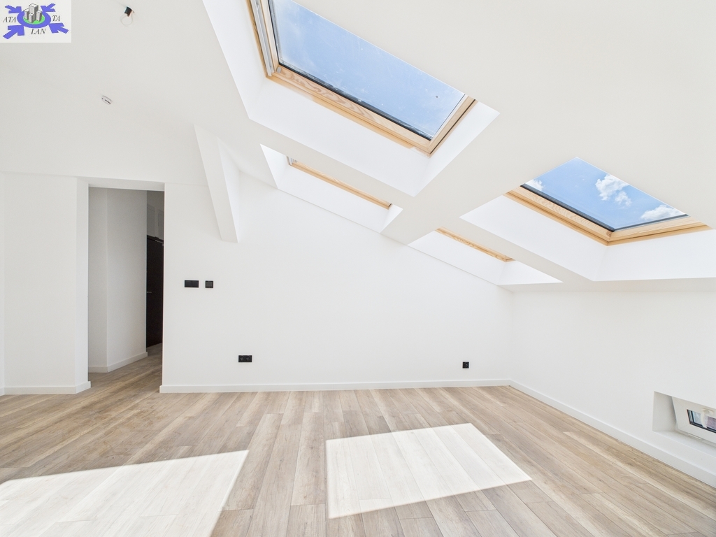 * duże okna dachowe, które wypełniają wnętrze naturalnym światłem i tworzą unikalny klimat