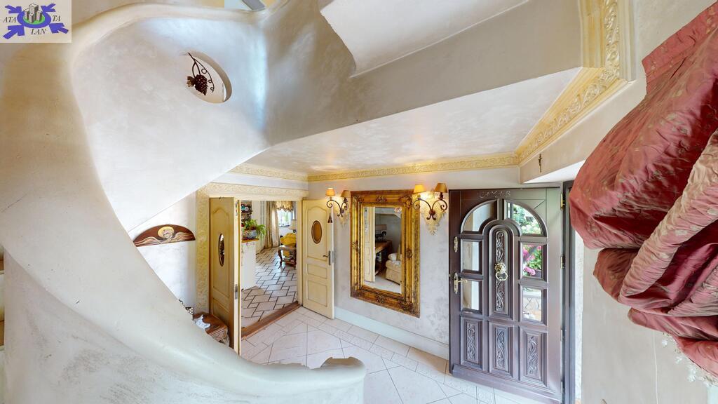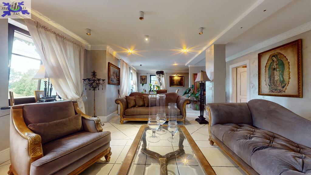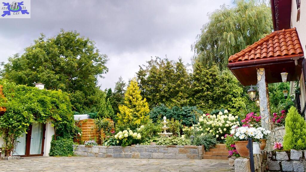 Dom otoczony jest przepięknym ogrodem, liczne nasadzenia, krzewy, oczko wodne, w pełni zautomatyzowany system nawadniania. Na terenie posesji znajduje się również domek gościnny (salon z aneksem kuchennym plus dwie sypialnie, łazienka z wc), sauna i jacuzzi. Standard pomieszczeń - foto.