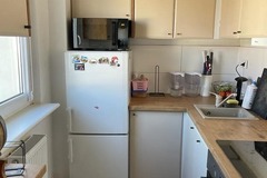 Kuchnia w zabudowie, wyposażona w sprzęt AGD.