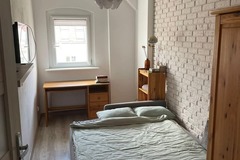 W pokojach na podłodze panele, ściany wygładzone i pomalowane.