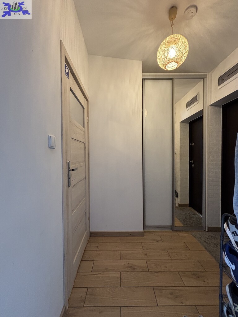 W korytarzu na podłodze gres, szafa w zabudowie.