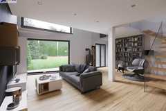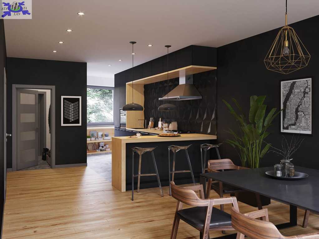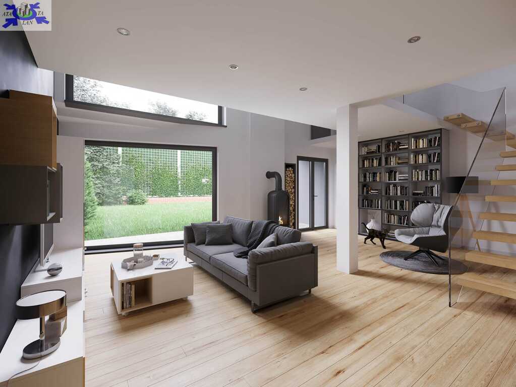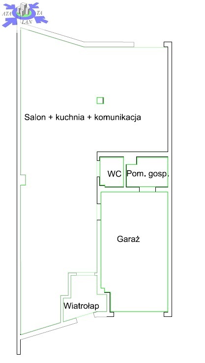 -Parter ok. 76,7 m2 (salon, kuchnia, wiatrołap, toaleta, garaż).