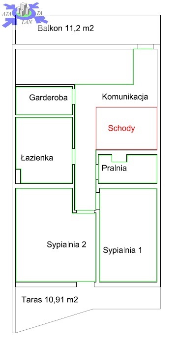 -Piętro ok. 73,3 m2 (2-3 sypialnie, łazienka, pralnia)